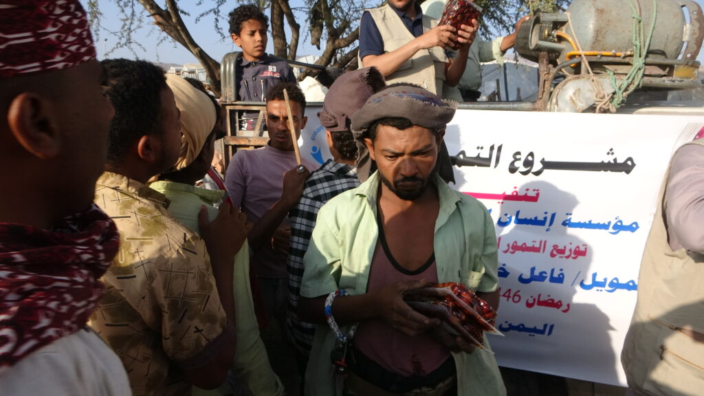 قياما بواجبها الإنساني والخيري والتنموي قامت مؤسسة إنسان للأعمال الإنسانية بتدشين مشروع توزيع التمور للسكان المقيمين والنازحين والمهمشين في محافظة الضالع في اليمن في رمضان 1446 ه .